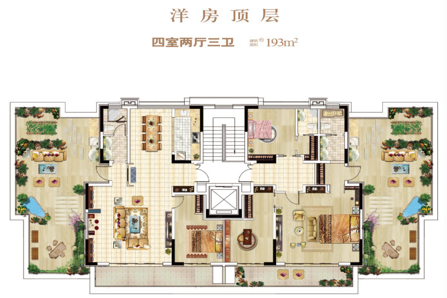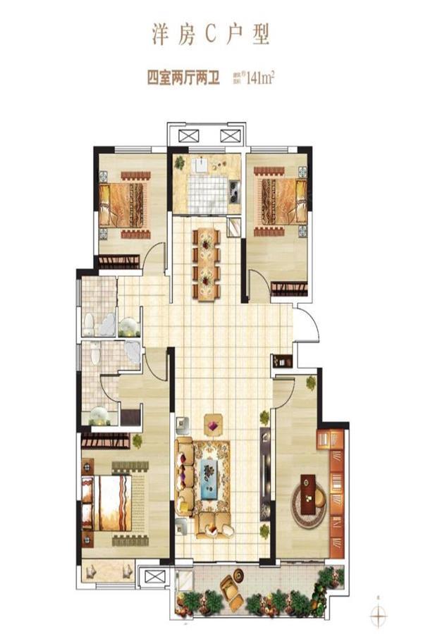 将中式修建的精髓与现代修建手艺相融合,,,,,,,南北通透,,,,,,,115—165㎡差别户型的电梯墅院洋房设计空间使用科学合理。。。。。。